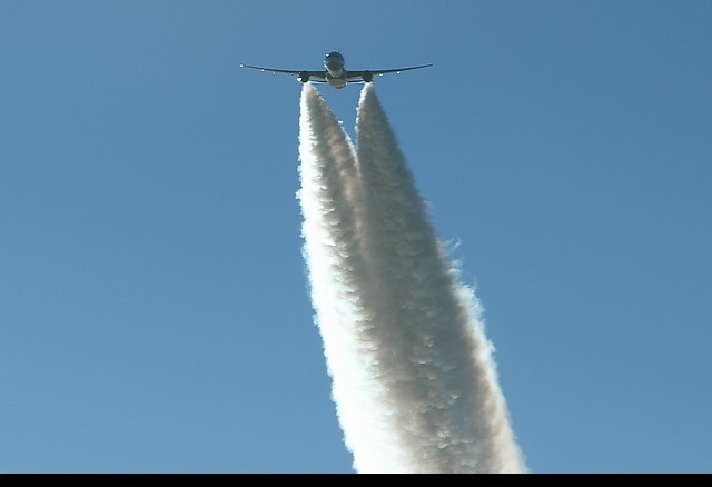 No es cuestión de ver conspiraciones por todas partes, pero el tema de las chemtrails o fumigaciones químicas está cogiendo bastante verosimilitud. Da bastante miedo, como el proyecto Haarp que vimos(http://compartablog.blogspot.com/2011/04/haarp.html).La historia es que en principio ya está desarrollado sistemas para influir en el clima y en yo qué sé más cosas a través de la fumigación de nanopartículas en el aire. Y esto sí que es bastante preocupante porque es posible que nos estén fumigando con regularidad y quién sabe qué provocando. Cuando vemos el paso de un avión que deja estela, si esta estela dura más de unos minutos quiere decir que no es el rastro que deja el vapor de agua o contrails, sino que es el rastro de algún producto químico.